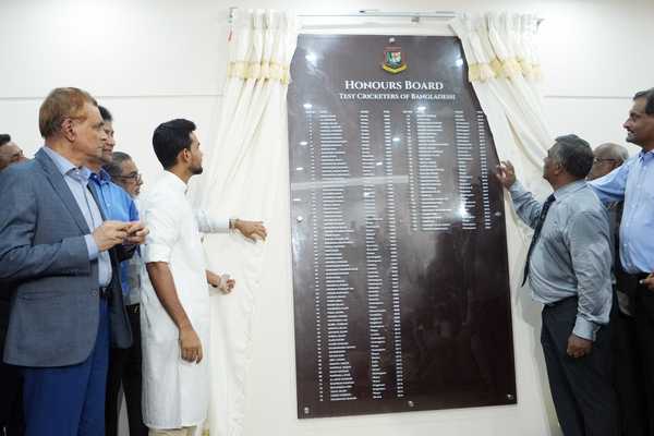BCB unveiled a Test Honours board for the first time at the ‘Home of Cricket’, bearing the names of all Bangladesh Test cricketers starting from Akram Khan to Habibul Bashar Suman, Mashrafe Mortaza, Tamim Iqbal, Shakib Al Hasan while apart from that current cricketers like Nayeem Hasan and Nahid Rana’s name are also included in the Honours Board.