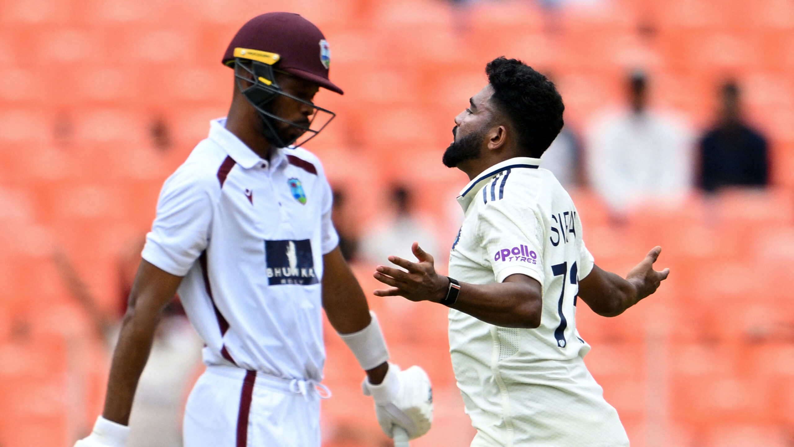 Mohammed Siraj picked up four wickets and Jasprit Bumrah three as India bowled out the touring West Indies for just 162, before reaching stumps at 2-121 on the opening day of the first Test.