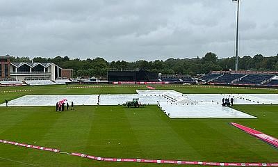 Today, the players were able to warm-up, and umpires Grace Bambury and Naeem Ashraf had made their way out to the middle for the toss just before the rain started as 2pm approached.