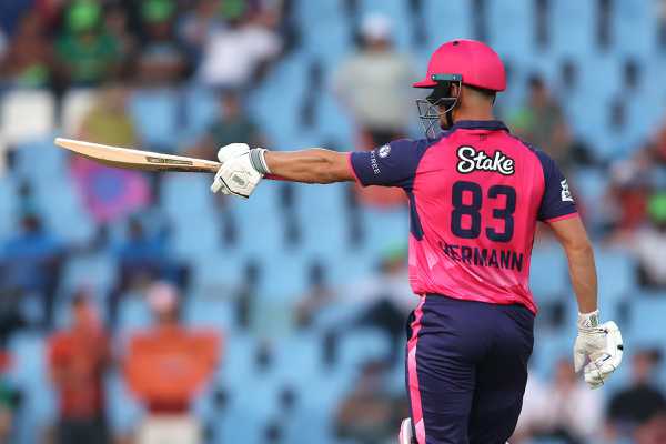 Hermann continued his assault and struck Masakadza for a six and a four off successive deliveries in the 11th over before bringing up his maiden T20I fifty with a flat six back over Maposa’s head in the 12th. Meanwhile, van der Dussen remained busy at the other end and South Africa’s hundred came in the following over.
