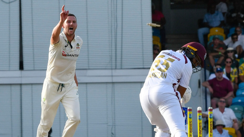 West Indies went to stumps on day one of the first Test 4-57 at Kensington Oval after earlier rolling the No.1-ranked Test side for 180 after Pat Cummins opted to bat as Australia’s Test team returned to the Caribbean for the first time in a decade.