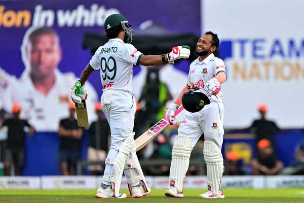 An unbeaten 247-run stand for the fourth wicket between Najmul Hossain Shanto (136*) and veteran Mushfiqur Rahum (105*) ensured Bangladesh took early honours on Day 1 against Sri Lanka in Galle. After a jittery start in the first hour of play, the right-left combination took Bangladesh from 45 for 3 to 292 for 3 at Stumps.
