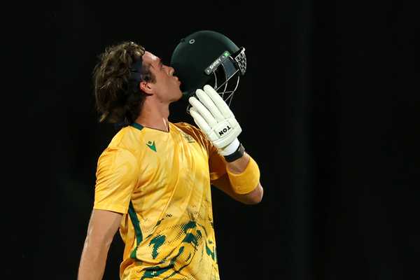 Maybe the most memorable of Brevis’ eight sixes was launched off the first delivery of the 10th, which Sean Abbott pitched fullish and just outside off stump. Brevis dabbed a step towards the ball and cocked his backswing for a booming drive, which he unleashed with visceral violence. The ball met the middle of the bat, which sent it arching high over long-on.