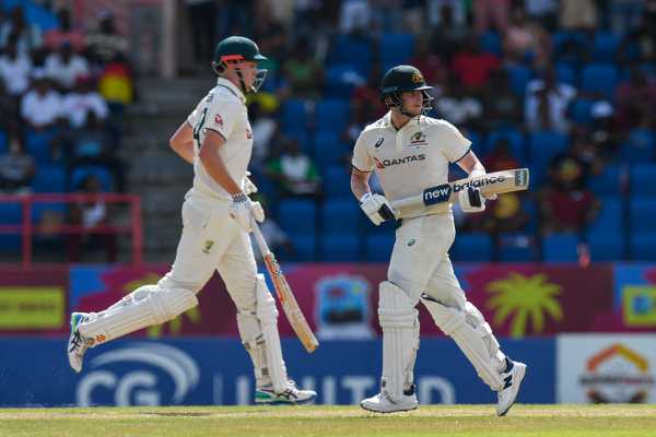 Smith looked in control for most of his knock, even though he was hit on the injured finger off the very first ball he faced. Green took his time early on but grew more confident as he spent time at the crease and brought up his fifty with a perfect straight drive. But he was bowled by Shamar Joseph off the very next ball while trying to cut one too close to his stumps.