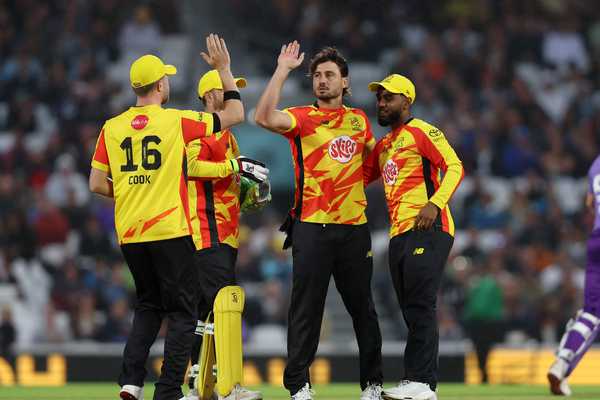 The game had a delayed start by 20 minutes and when it did get underway, Rockets struck early with the in-form Zak Crawley edging one to slip. But Dan Lawrence unleashed himself with two sixes against Sam Cook and hit Lockie Ferguson’s first ball for a boundary. Dawid Malan looked in very good touch at the other end and smashed Marcus Stoinis for a six over square leg. Malan cleared the ropes once again, this time off David Willey before the bowler got his revenge off the very next delivery.